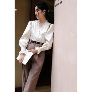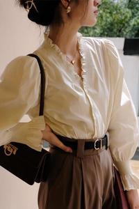 复古法式宫廷风泡泡袖上衣女长袖衬衫设计感小众衬衣早秋新款