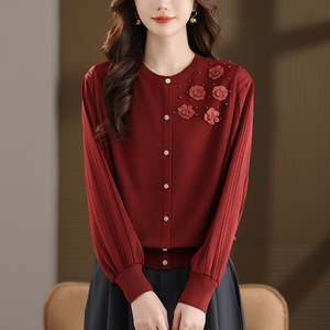 中年女装春秋毛衣百搭上衣2025新款时尚妈妈秋装针织拼接打底衫