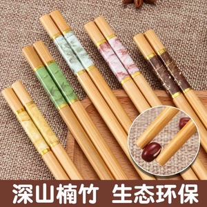 楠竹五色筷餐具套装家用一人一筷家庭分餐酒店餐厅大理石印花竹筷