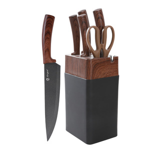 木纹手柄不锈钢刀具7件套带底座跨境厨房菜刀厨师刀收纳商务礼品