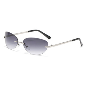 Y2K无框金属椭圆水银凹造型复古美式千禧辣妹跨境太阳眼镜女款潮