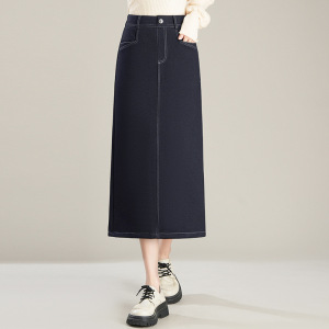 时髦牛仔半身裙2025秋季新款中长款垂感修身直筒裙高腰开叉一步裙