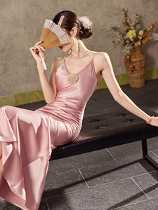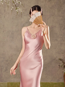 小众设计高级感手工立体水钻花朵轻奢气质醋酸吊带连衣裙 M3059