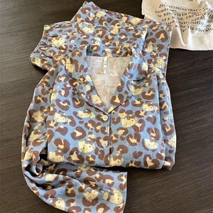 新款复古式豹纹Kitty猫睡衣女春秋季长袖长裤ins风套装少女家居服