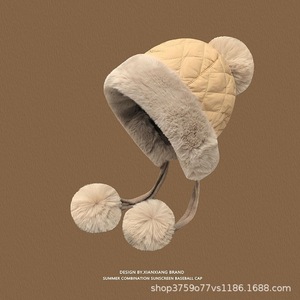 新款雷锋帽女秋冬季毛绒帽子加厚保暖帽护耳骑车防风防寒毛线帽女
