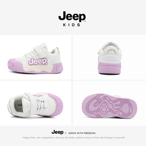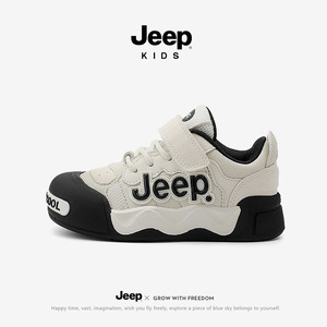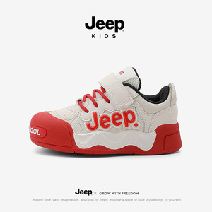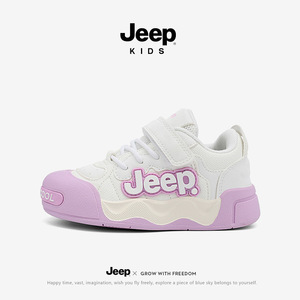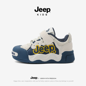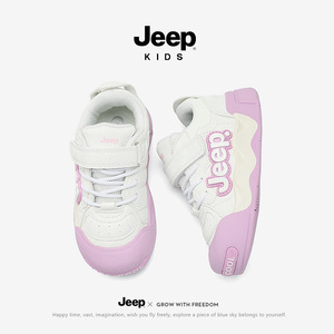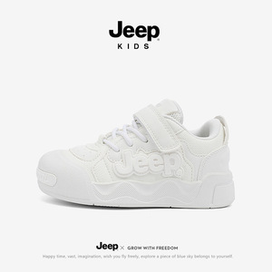 Jeep童鞋女童板鞋2025秋季新款儿童运动小白鞋男童低帮皮面春秋款