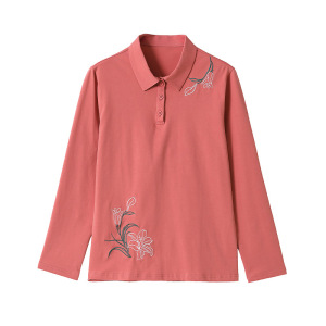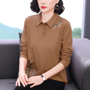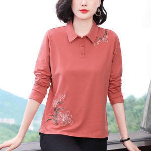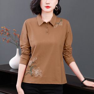 妈妈装2025新款t恤长袖休闲气质中老年时尚洋气上衣百搭刺绣翻领