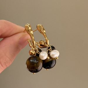 旧梦年华~美拉德老钱风虎眼石精致高级感耳钉女独特漂亮耳环耳饰
