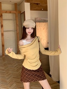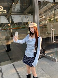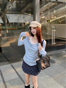 纯欲风露肩设计感长袖T恤女秋季2025新款收腰显瘦蕾丝拼接上衣ins