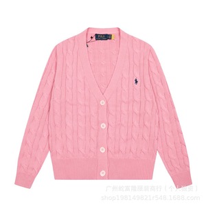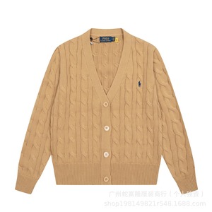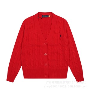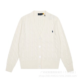 2025秋冬新款拉夫RL大V领纯色小马刺绣logo麻花针织开衫现货代发