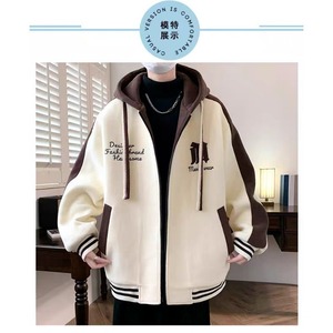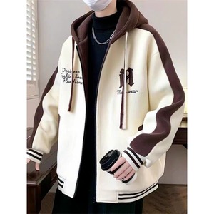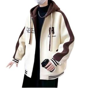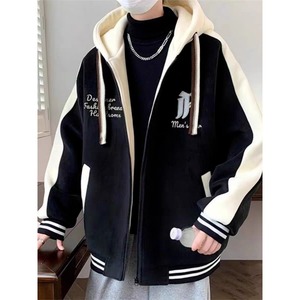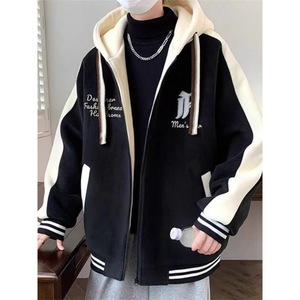 春秋季撞色连帽开衫卫衣男生潮牌胖子加肥加大码宽松休闲外套上衣