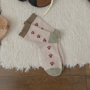 卡通可爱袜子女中筒袜ins潮棉袜春秋款日系植物蘑菇学生秋季长袜
