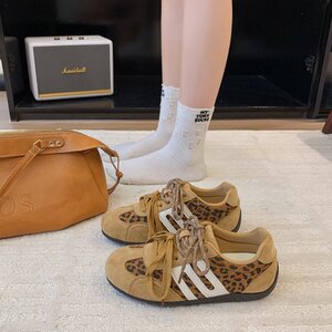 Qiyor复古豹纹德训鞋2025秋季新款厚底休闲鞋百搭软底阿甘鞋板鞋