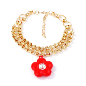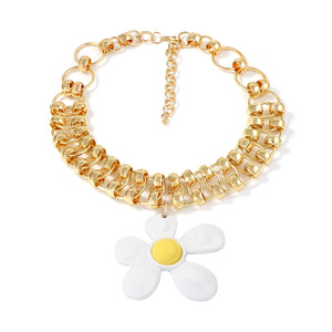 跨境欧美夸张轻奢INS风金属宽链条合金喷漆花朵心形吊坠女锁骨链