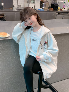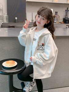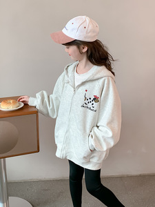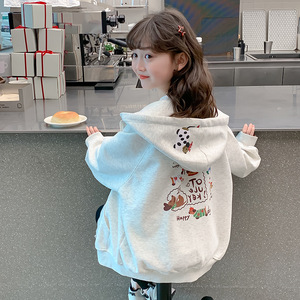 女童秋装韩版卡通拉链外套2025新款中大童韩版连帽长袖开衫卫衣潮