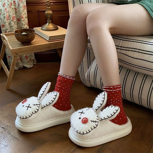 时尚反派兔子海盗个性棉拖鞋舒适女士2025新款居家保暖月子鞋冬季