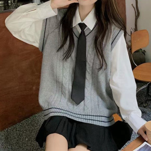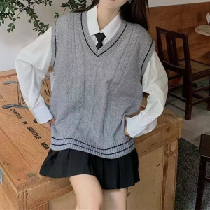 春秋新款学院风v领针织马甲清新甜美女外穿无袖撞色麻花毛衣背心