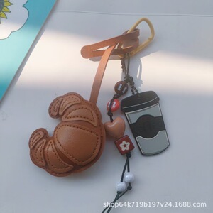 miu系包挂钥匙扣可爱皮质牛角包箱包配饰时尚创意编织串珠挂件