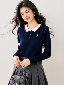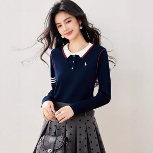法式显瘦时尚翻领长袖针织衫上衣女秋季新款超好看小香风软糯毛衣