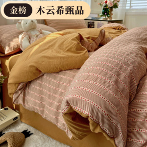新款墨竹水洗棉色织提花家用床上用品四件套学生宿舍小清新三件套