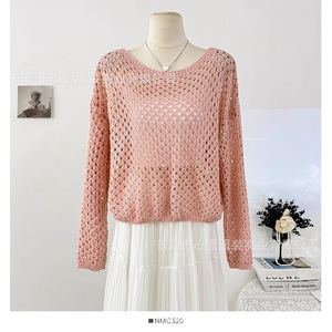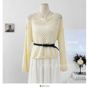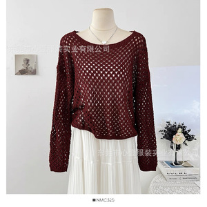 2025跨境早秋短款镂空罩衫上衣女新款设计感慵懒长袖T恤针织衫