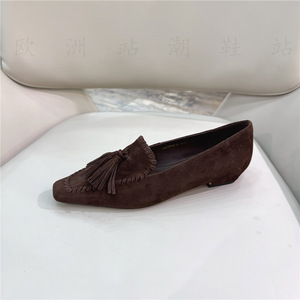 复古磨砂流苏一脚蹬软底乐福鞋女2025年春季新款百搭时尚深口单鞋