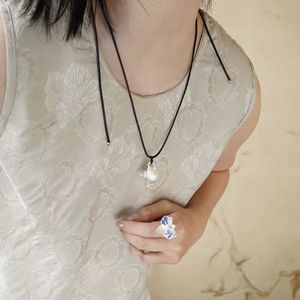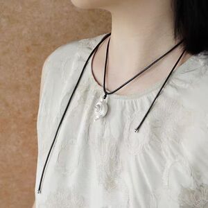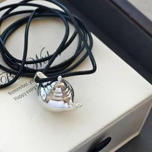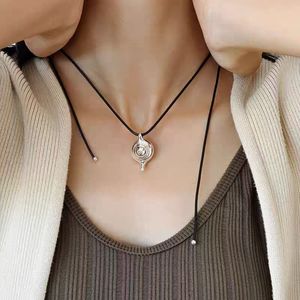 秋季新款拉丝银壶吊坠简约气质款长项链小众设计款黑绳银壶吊坠女