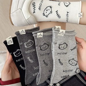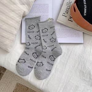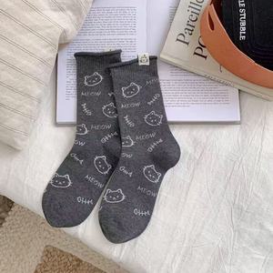 kiti小猫秋季新款袜子女韩可爱卡通潮袜百搭无骨中筒袜舒适女袜