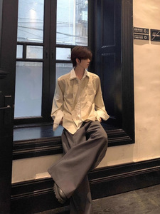 简约百搭老钱风高级感纯色假两件长袖衬衫男宽松休闲通勤垂感衬衣