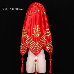 结婚新娘红色盖头婚礼蒙头红 头巾中式洋气盖头纱巾半透明