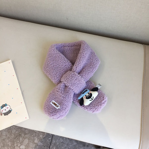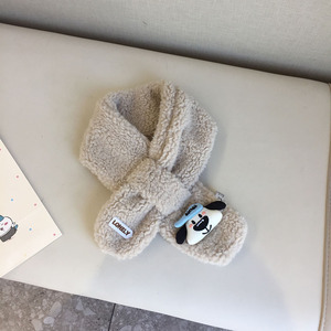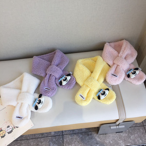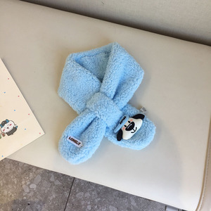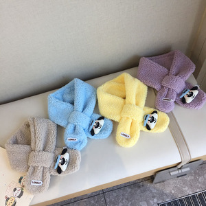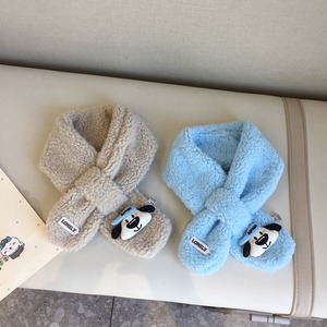 韩国冬季儿童围巾防寒羊羔毛超萌可爱宝宝保暖交叉围脖毛绒围巾