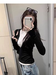 【人棉】美式独特修身短款外套女秋韩系辣妹设计感假两件上衣