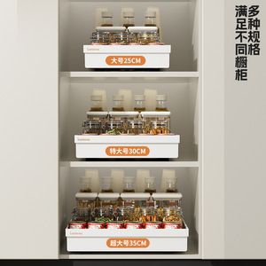 抽拉式收纳盒免打孔收纳置物架厨房带轨道橱柜五谷杂粮收纳架批发