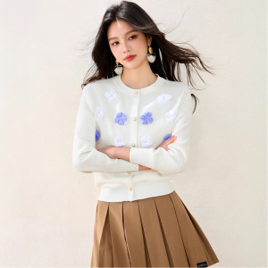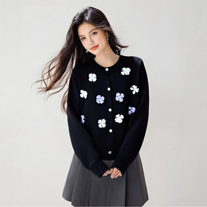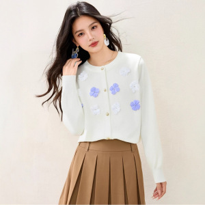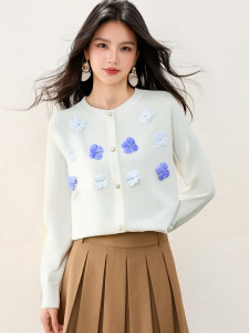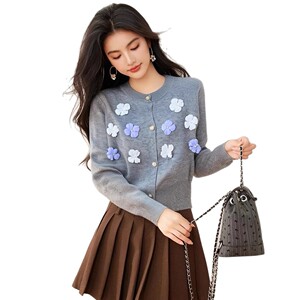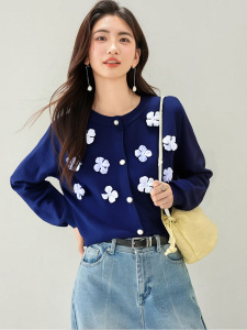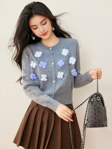 法式立体花朵时尚长袖针织衫上衣女秋季新款洋气减龄温柔软糯毛衣
