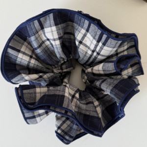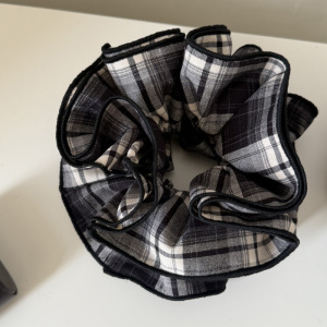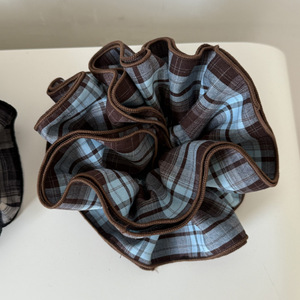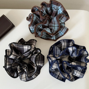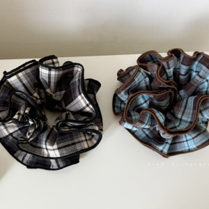 韩系复古蓝色格子四层大肠发圈女高级感超大丸子头扎头发头绳头饰