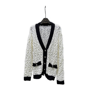 ch25秋冬新款慵懒感气质宽松版粗针拼色毛衣开衫