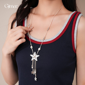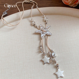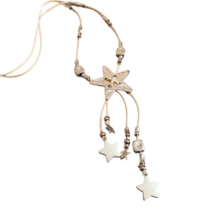 法式复古皮革编织星星流苏项链轻奢高级感毛衣链个性时尚独特项饰