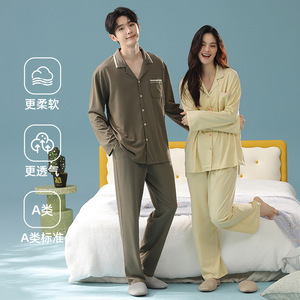 【抗菌拉架棉】新款情侣睡衣春秋长袖韩版高级感男女士家居服套装