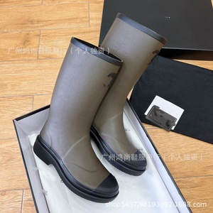稥系列中筒中古无缝雨靴2025年早春系列骑士靴印花底女鞋雨鞋女靴