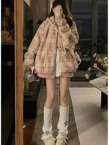 加厚小香风羊羔毛绒外套女2025秋冬季新款独特甜美韩系棉衣棉服女