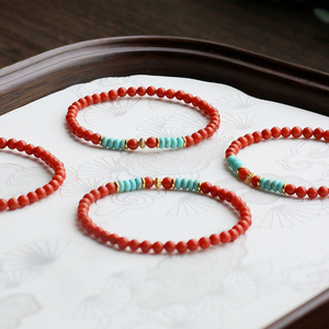 GUANSHISAN原创新中式天然南红玛瑙绿松手串女柿柿如意送礼物手