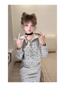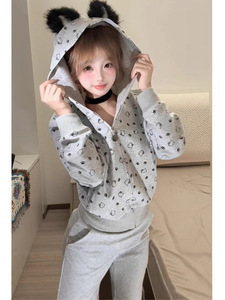 2025甜美毛绒耳朵连帽卫衣女INS秋冬新款可爱满印Kitty开衫外套潮