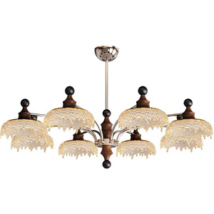 中古风餐厅吊灯复古胡桃木色餐桌吧台饭厅灯创意个性艺术装饰吊灯