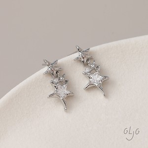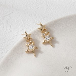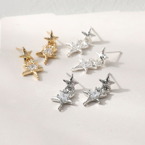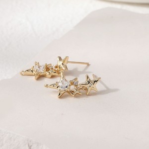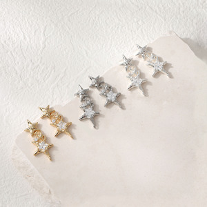 14K电镀真金小众设带吊精致锆石星星耳钉diy手作耳饰材料配件
