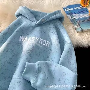 跨境外贸圆领套头卫衣男款秋季潮牌美式宽松连帽扎染脏脏外套ins