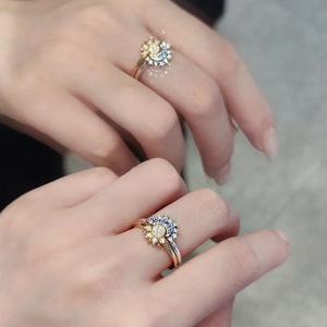日月同辉个性镶钻指环感组合戒指叠戴开口戒指新款欧美跨境