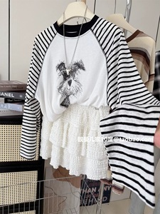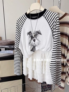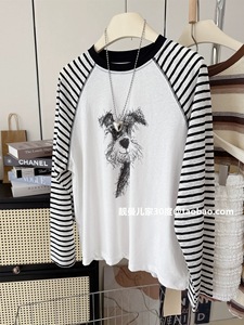 韩版减龄纯棉卡通狗宽松中长薄款夏秋季插肩防晒长袖T恤女装百搭