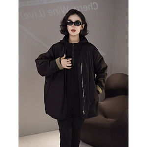 欧货撞色两面穿V领风衣女士秋季新款宽松显瘦百搭棒球中长款外套
