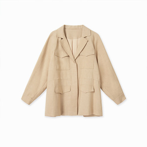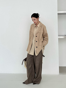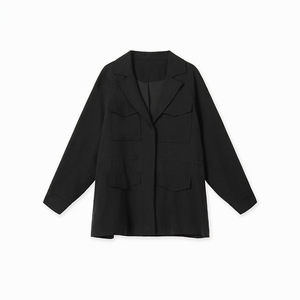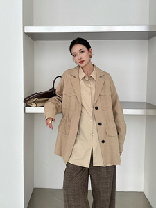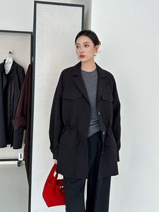 ELSISSI八字领单排扣工装口袋西装外套女2025秋季新款高级感上衣