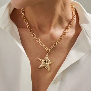 欧美跨境饰品 轻奢风不规则敲打五角星吊坠项链 通勤百搭几何项饰